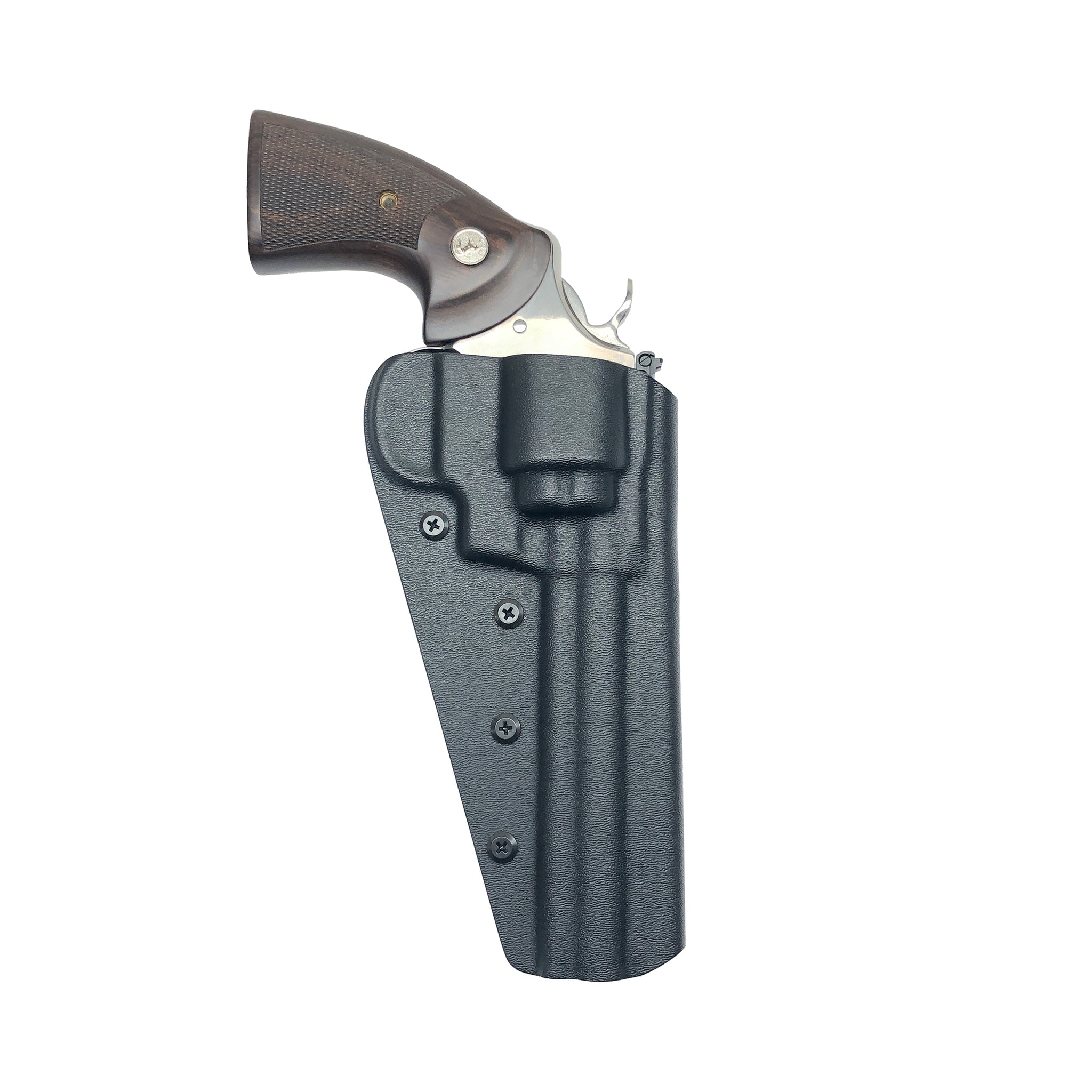 Comfortably and safely carry your firearm with our revolver holster. This revolver holster provides you with full trigger guard protection and adjustable retention. This OWB holster utilizes many different attachment types for a quick detach holster that is low profile. Our revolver holsters are made for hard use and everyday wear. Each holster is custom made and handcrafted in the USA.
